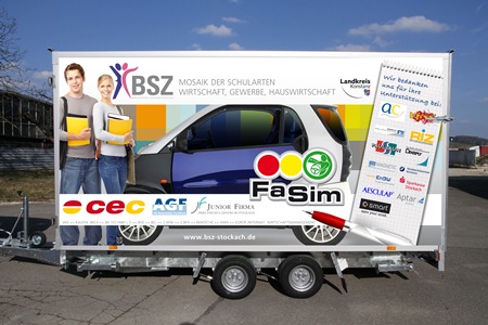 Dazu wurde ein von der Firma Bernot, Konstanz gesponserter Flugsimulator in einen PKW-Fahrsimulator verwandelt und in die Fahrzeugkarosserie eines echten „Smart“ eingebaut.